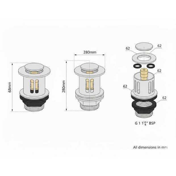 The J.B. Del & Co Push Button Click‑Clack Basin Waste Brass Top Slotted is a high‑quality waste solution designed for basins with an overflow. Featuring a push‑button click‑clack mechanism, it provides smooth and effortless open and close operation. The brass top adds a premium finish and long‑lasting durability, making it suitable for both modern and traditional bathroom settings. Ideal for new installations and replacement projects.
