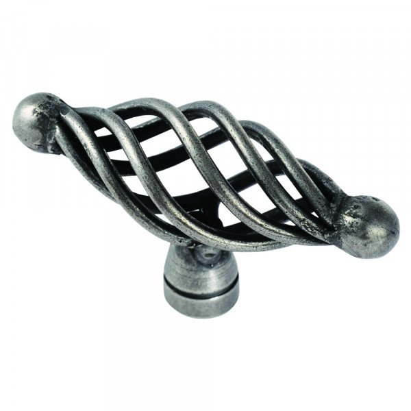The Steel Cage Oval Knob is a distinctive and stylish furniture knob featuring thin round steel bars twisted to form an oval cage design. The cage gently narrows toward the ends, finishing in a ball pinnacle, creating a form that is both comfortable to grip and visually striking.
